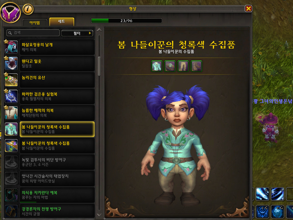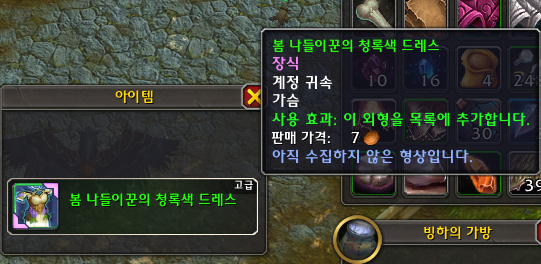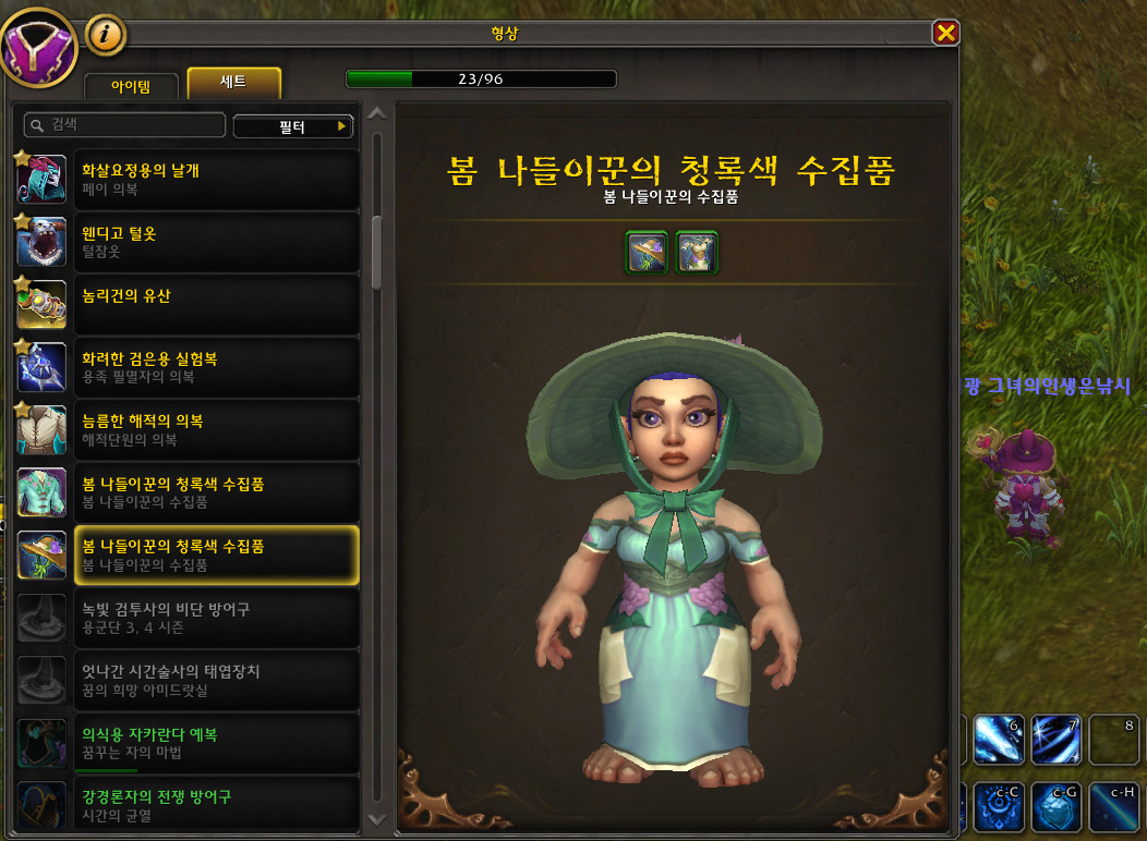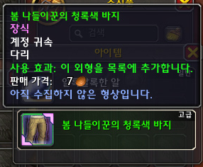 봄 나들이꾼의 청록색 의복 순으로 획득하였습니다.
