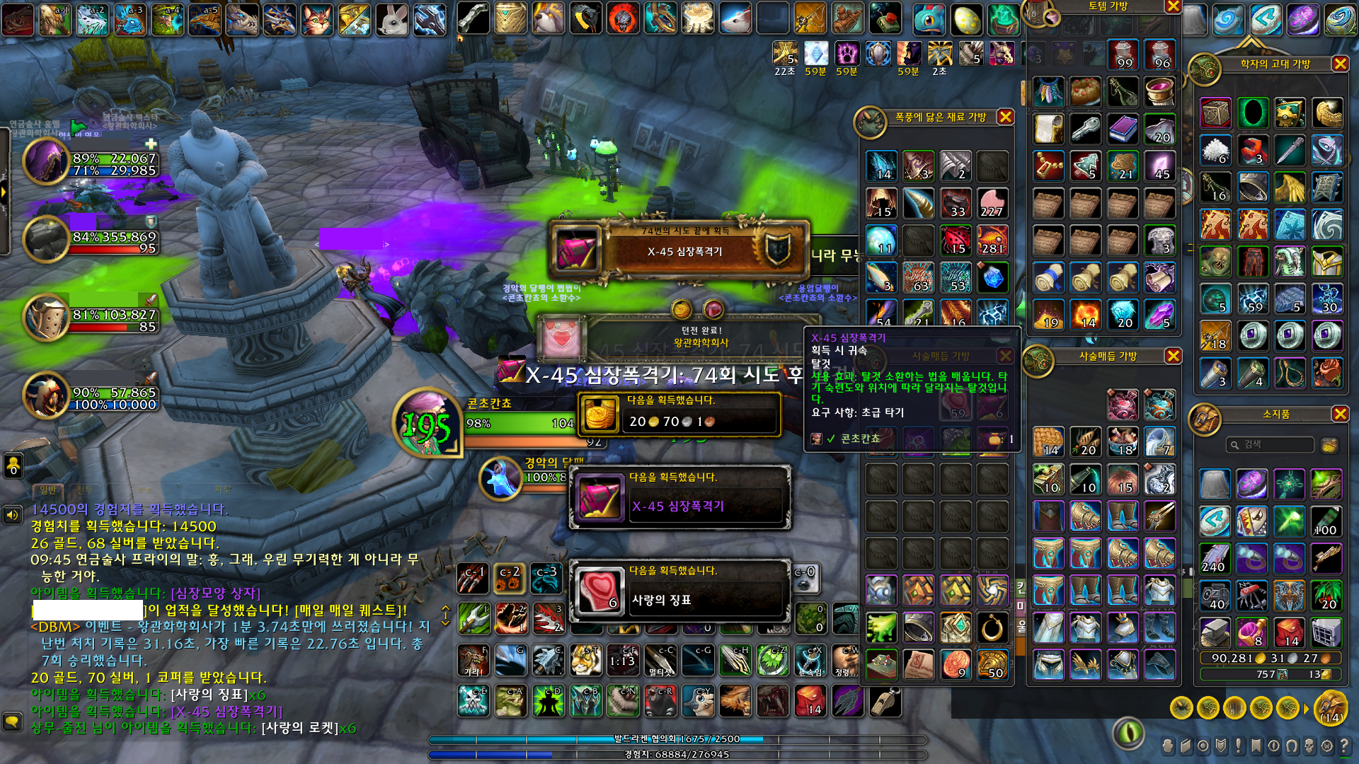 부캐들 늘리면서 매번 레벨 올리고, 귀찮으면 부스팅도 하면서 그렇게 던전을 돌았습니다.