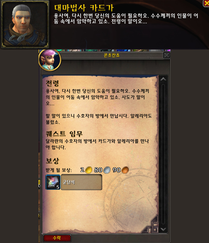 카드가한테 보고를 하며 퀘스트를 마칩니다.