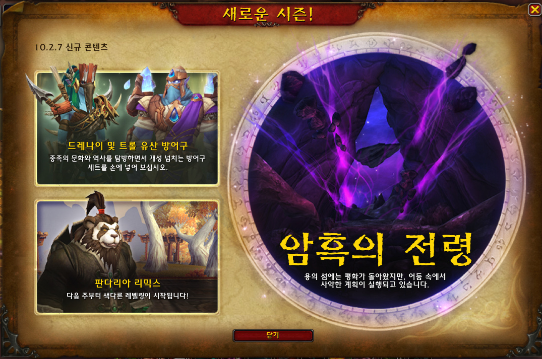 24년 5월 9일 10.2.7패치가 적용되어 만렙 캐릭터로 접속하면 자동으로 전령 퀘스트를 줍니다.