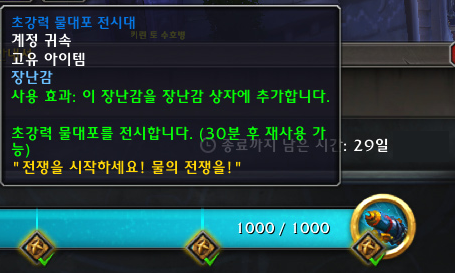 '신규'라고도 안 뜨고 그냥 자연스럽게 상자에 자동으로 추가된 '초강력 물대포 전시대'입니다.