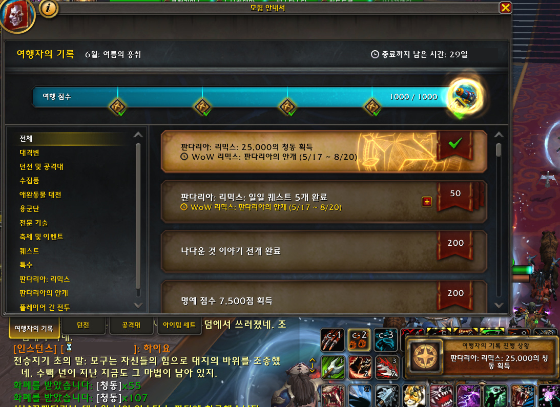 판다리믹스 청동 25,000개 150점 → 누적 1,000점