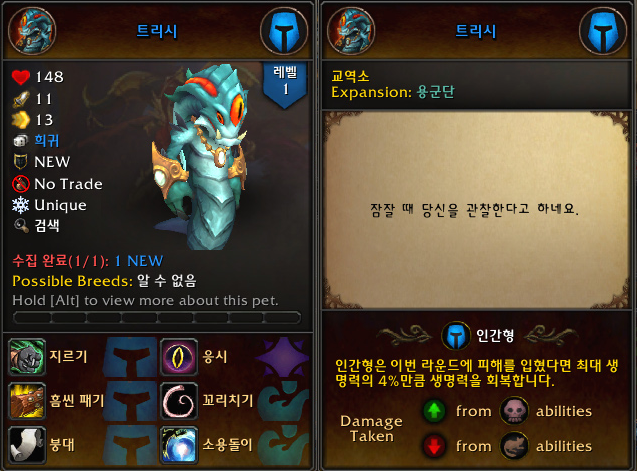 애완동물 트리시 획득 완료!!
