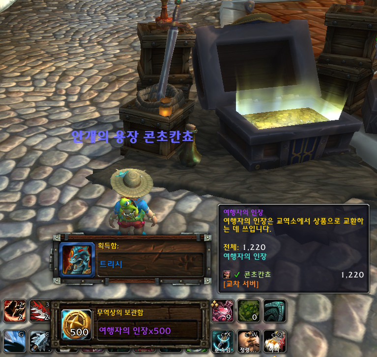 다시 용군단 캐릭터로 접속해서 교역소 보상 상자를 확인했습니다.
