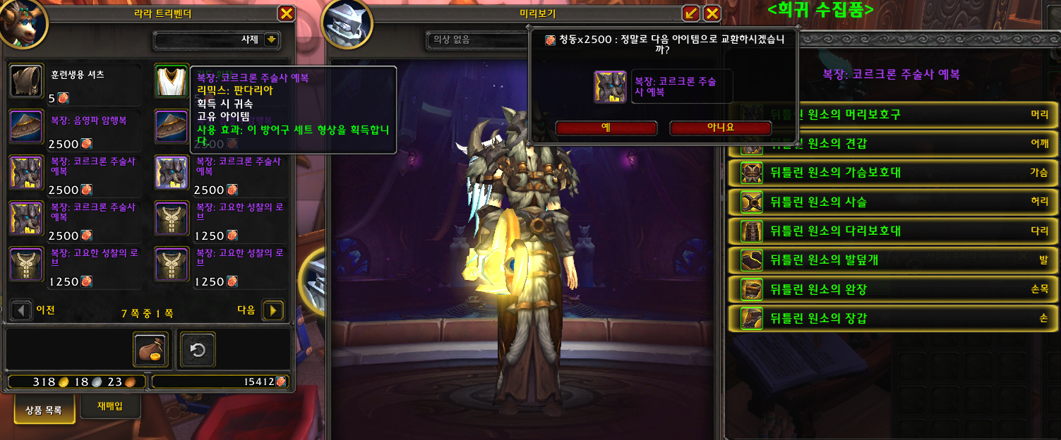 '코르크론 주술사 예복(시원함)'(와우 판다리아 리믹스 세계 의복 상인 구입 형상)