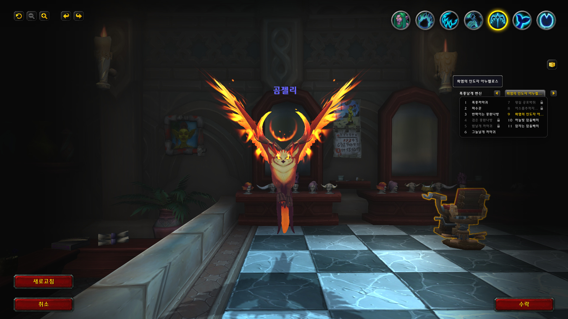 '타오르는 잠올빼미의 징표'를 사용하면 드루이드로 미용실에 아누렐로스 모습을 선택해서 빠른 비행 변신을 할 수 있습니다!