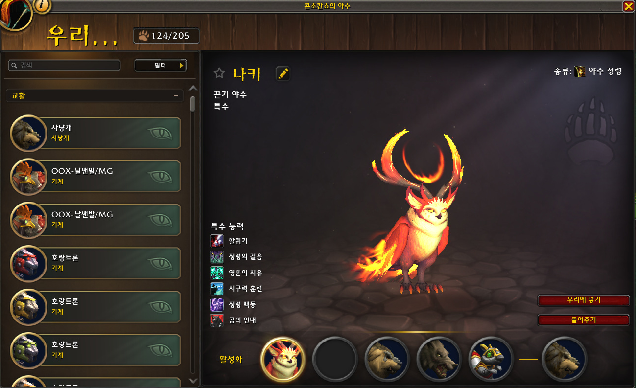 계정 공유라서 사냥꾼은 나키 길들이기 가능, 드루는 나키 변신 가능합니다!
