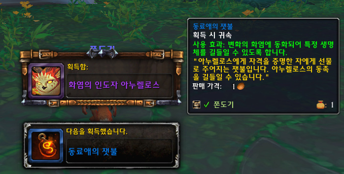 가방에 들어온 아누렐로스 고삐를 사용하면 아래 이미지처럼 두 개의 아이템이 자동으로 가방에 들어옵니다!