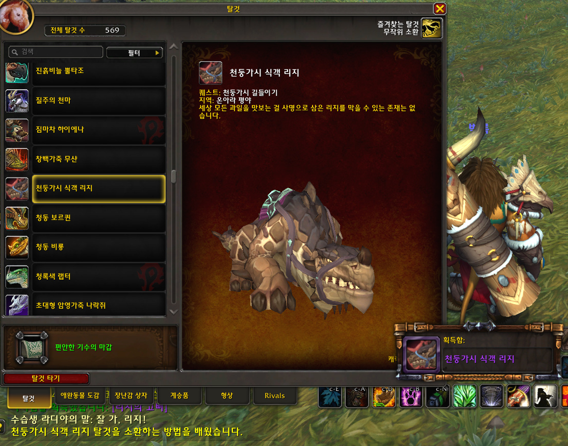 천둥가시 식객 리지 탈것을 이렇게 획득하였습니다!