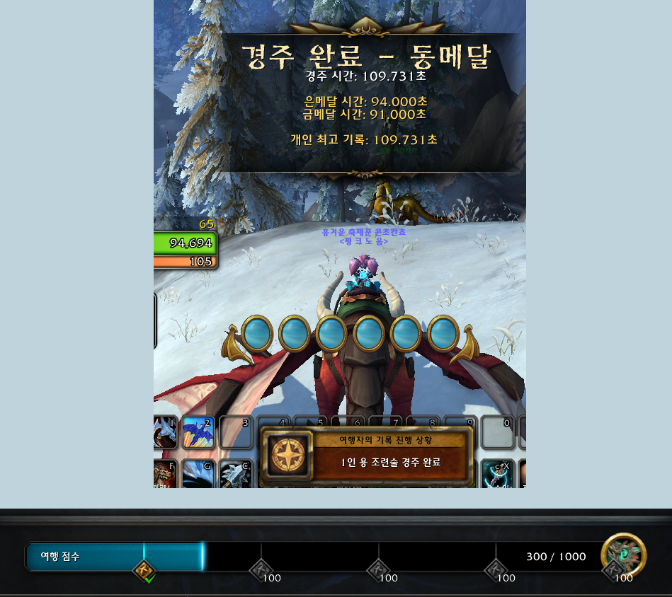 용 조련술 경주했어요. (+100점)