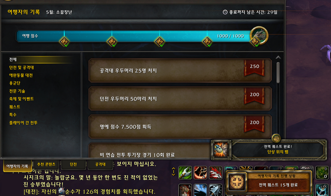 본캐 스톰윈드, 샤트라스, 노스렌드달라란 + 부캐 스톰윈드 각각 연퀘했어요. (+150점)