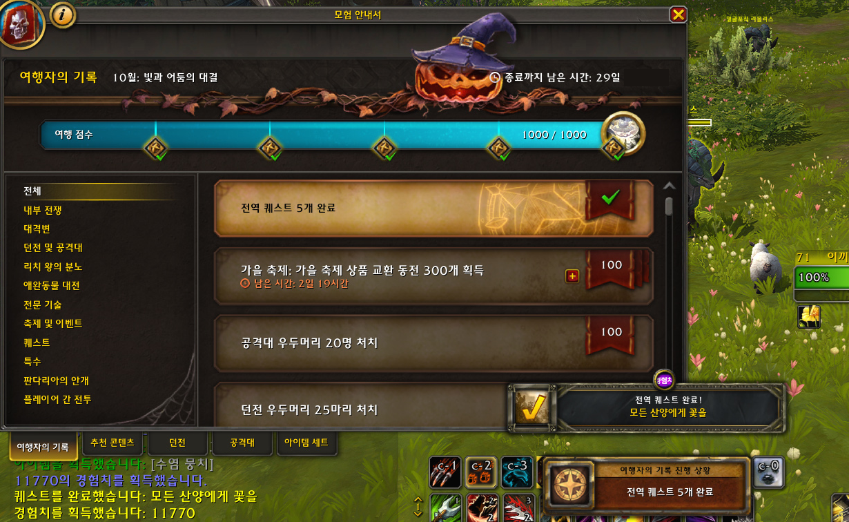 전역퀘 5개 완료 50점 끝!