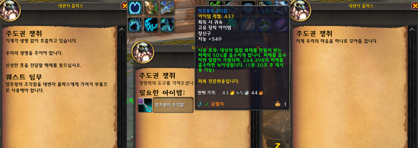 템 획득하자마자 바로 퀘스트를 자동으로 줬고, 정말로 가방에 퀘 시작템이 보이지 않았습니다. 😮