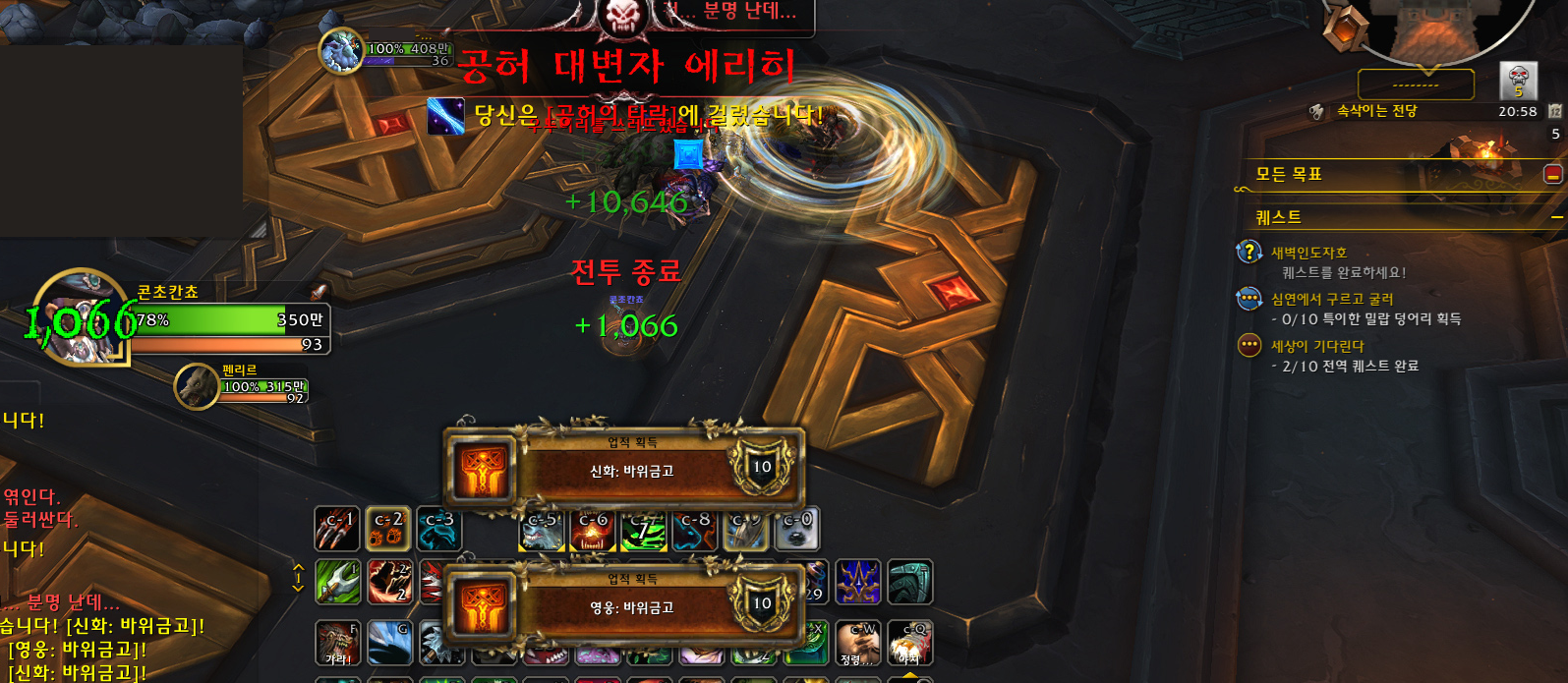 9월 12일 내부전쟁 1시즌이 시작되자마자, 본캐 냥꾼으로 처음 바위금고 신화 던전에 갔습니다!