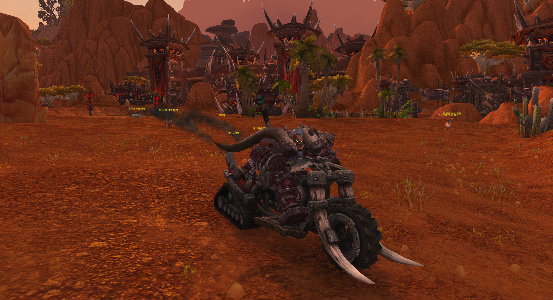 작년 12월에 획득한 만노로스 어깨를 유산 방어구와 함께 형변한 마그하르 오크 호드 동맹종족으로 탈것 탑승해보았습니다.