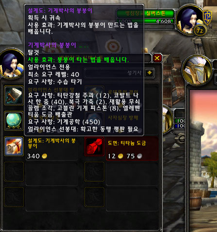 와우 리치왕의 분노 확장팩의 전문기술 기계공학으로 2인승 오토바이 지상 탈것을 제작할 수 있습니다.