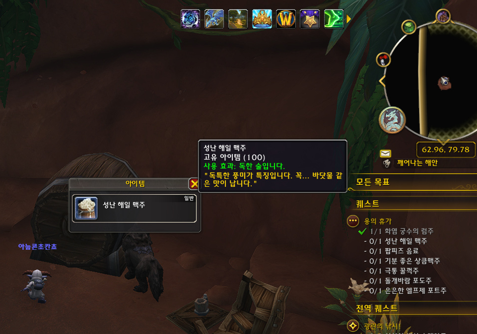 '기분 좋은 상큼맥주'를 판매하는 npc 옆에 '코라 풀세일'이 있는데 '쿨 티란 적포도주'를 판매합니다.