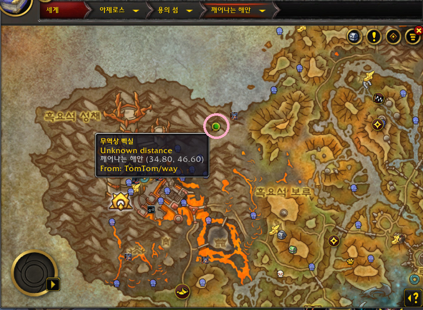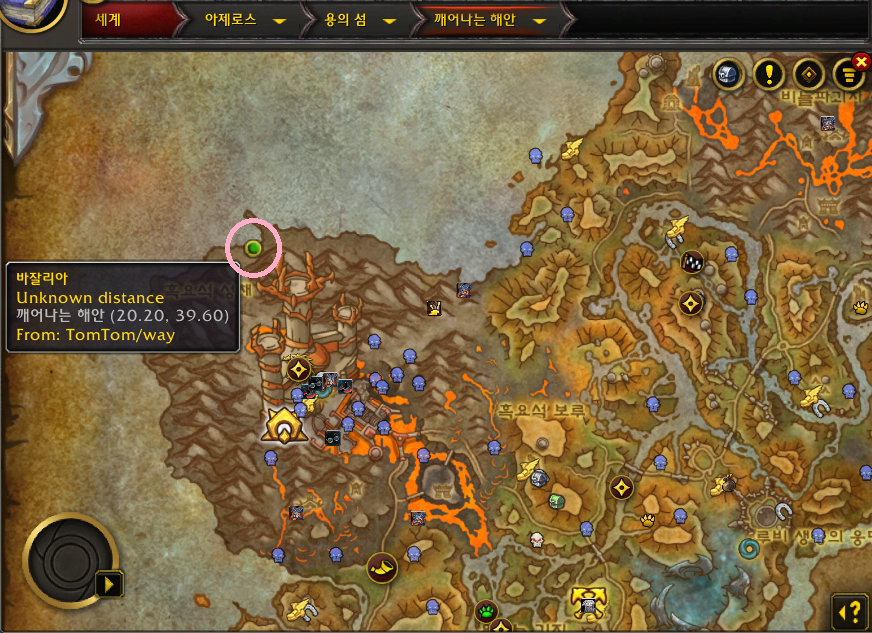 용의 휴가 퀘스트를 주는 npc 위치는 아래 지도의 핑크색 동그라미에 있습니다.