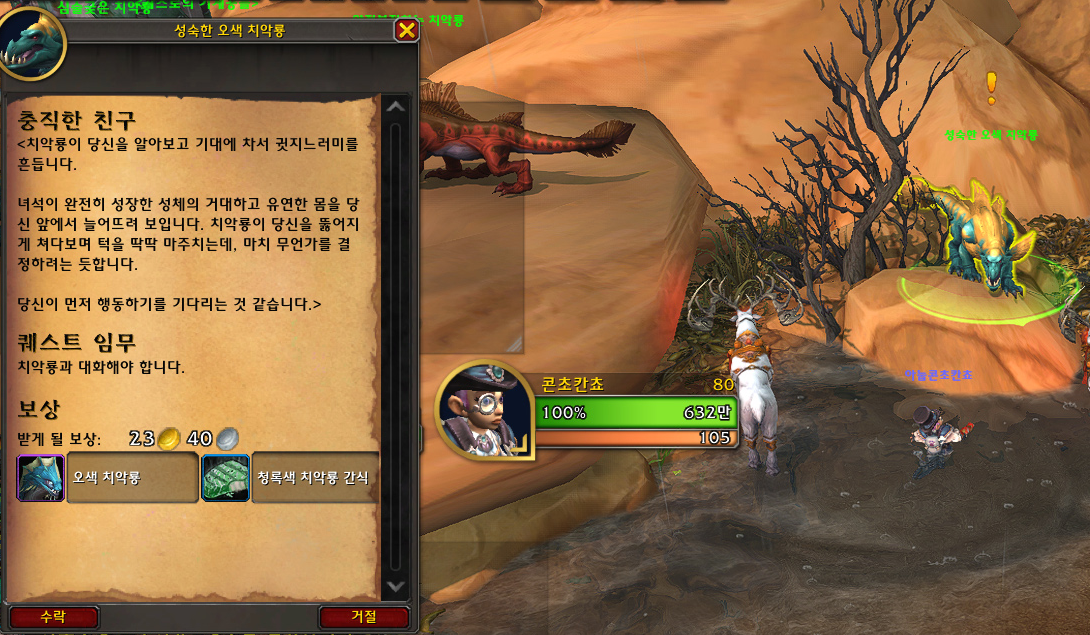 탈것 보상 퀘스트입니다! 치악룡과 대화해야 합니다.
