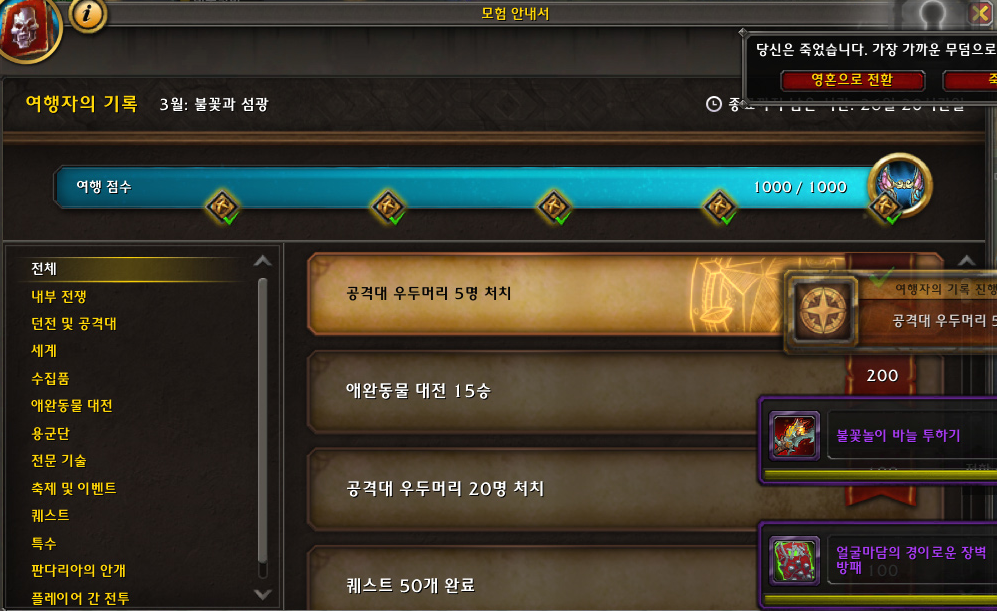 전역퀘스트 25개 완료