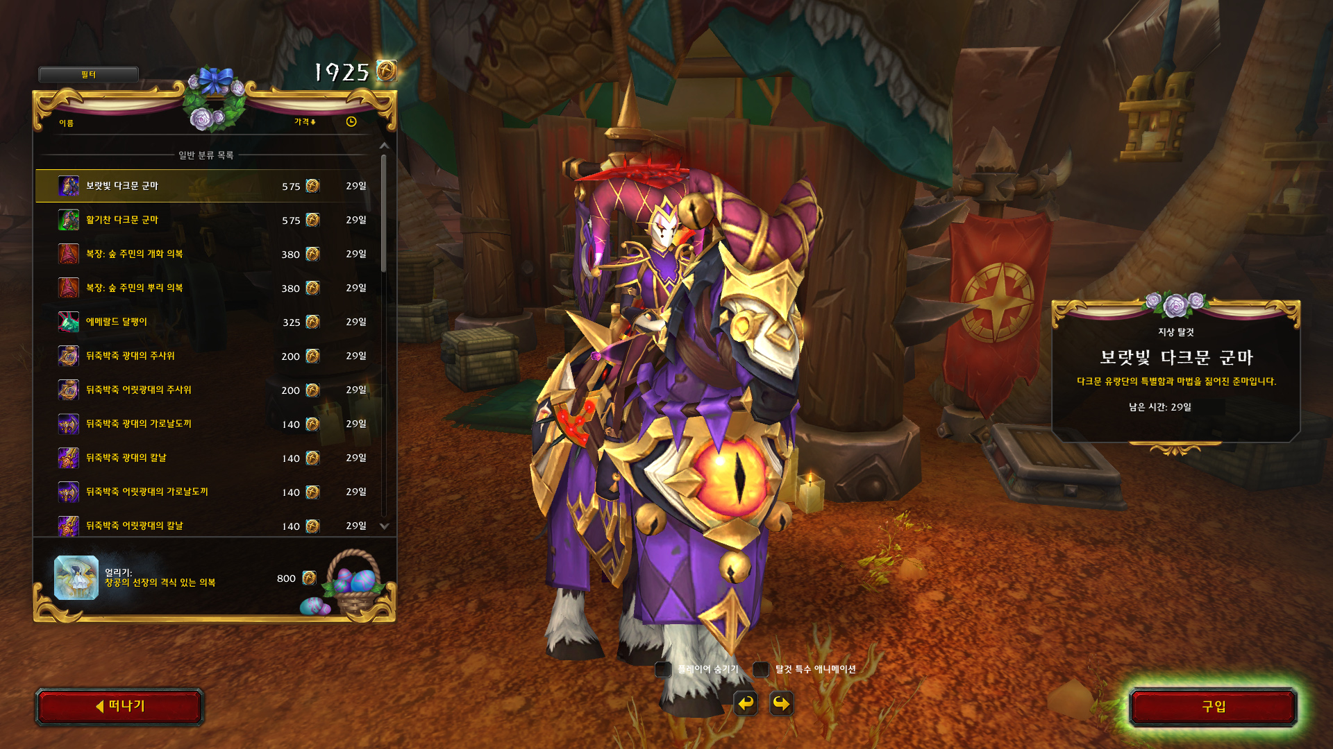 '보랏빛 다크문 군마' 지상 탈것 구입 및 수집 완료!!