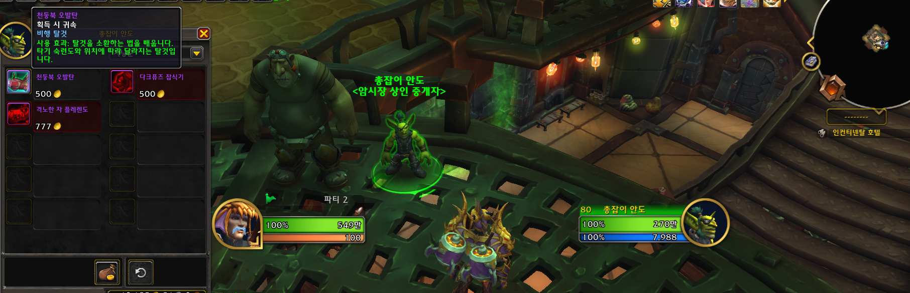 이번주 드디어 와우 내부전쟁 언더마인 공격대 던전 영예인 '갤라지오 충성 보상 사교회' 영예를 8 달성하여 탈것을 구매할 수 있게 되었습니다!
