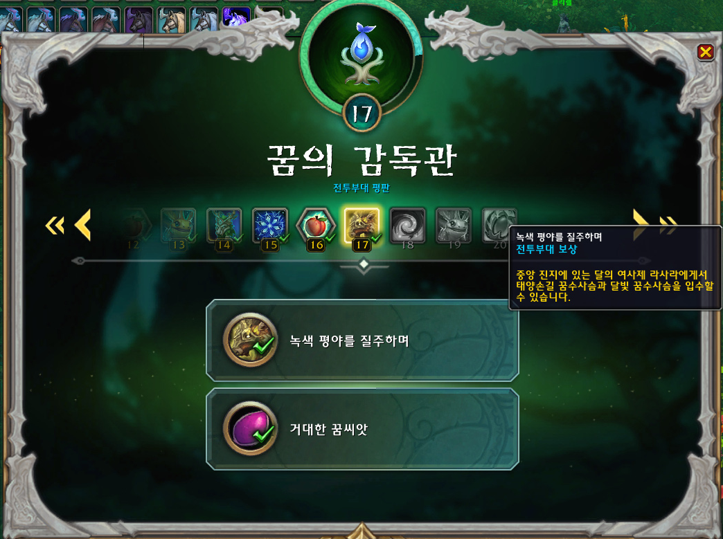 용의섬-에메랄드의 꿈 지역 '꿈의 감독관' 영예 17을 달성하였습니다.