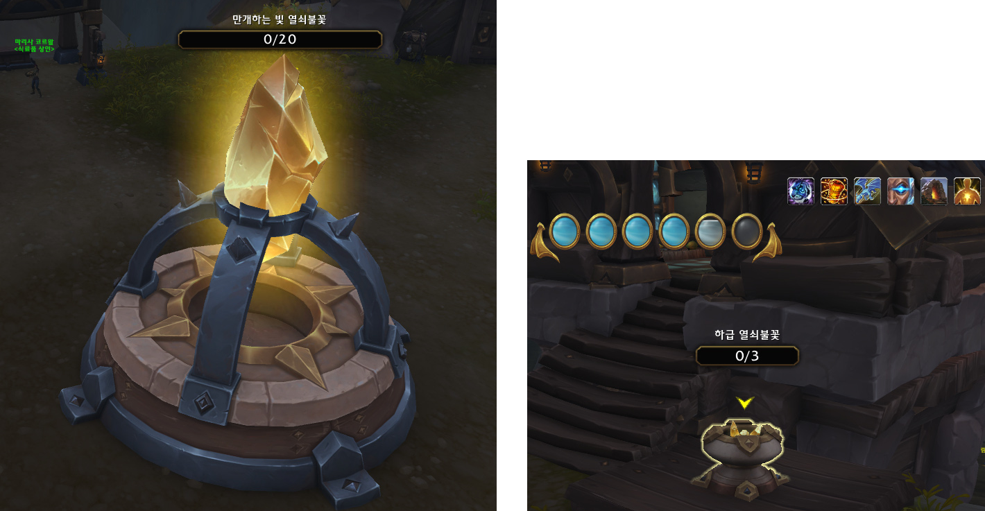 광휘의 잔재의 사용처는 '만개하는 빛 열쇠불꽃'과 '하급 열쇠불꽃'에 우클릭하면 던질 수 있고, 숫자바가 채워집니다.