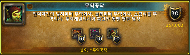 "언더마인의 빌지워터 무역회사, 블랙워터 무역회사, 스팀휘들 무역회사, 투자개발회사와 확고한 동맹 평판 달성"