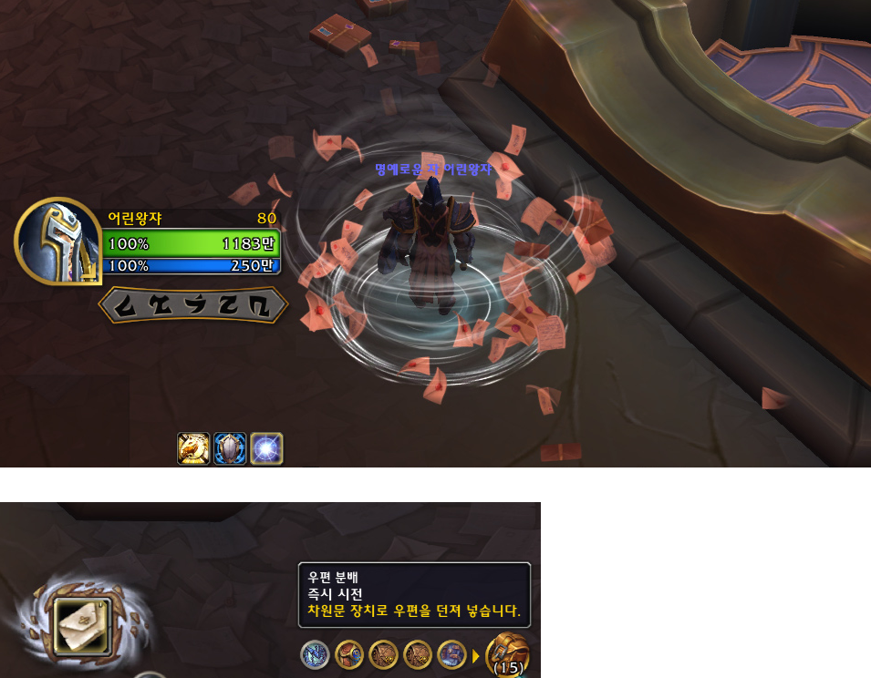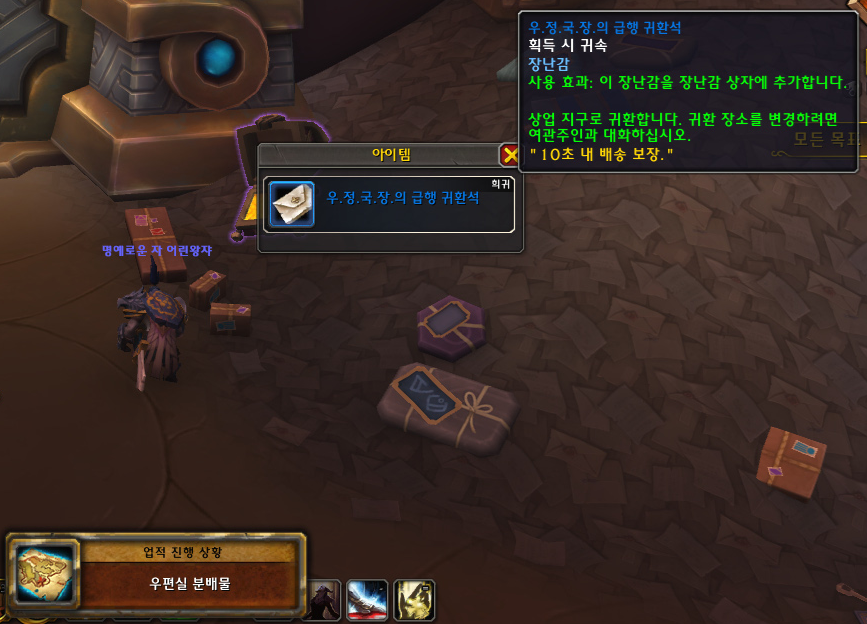 '우편 분배: 차원문 장치로 우편을 던져 넣습니다.'