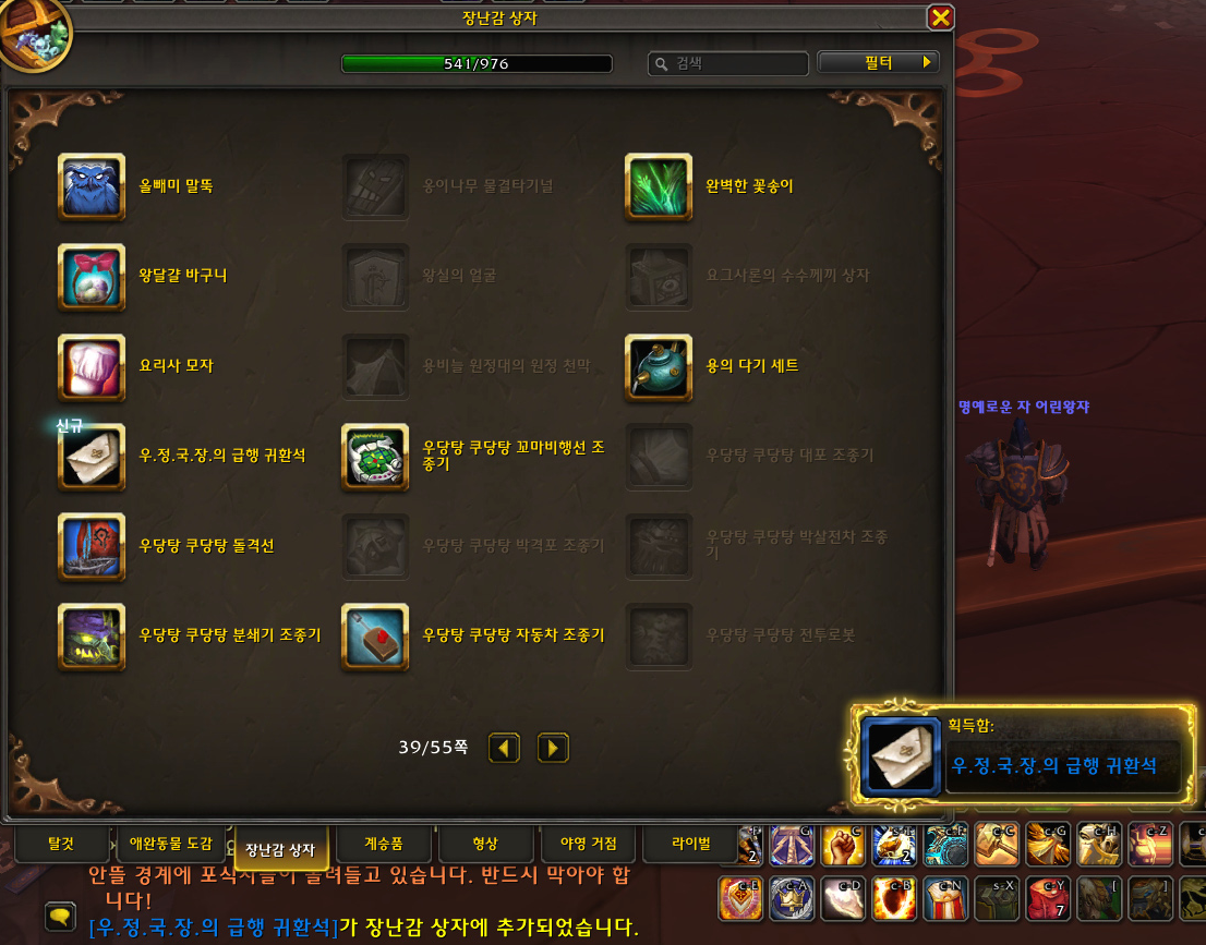 장난감 획득하면 '우.정.국.장 2.0'이 도와줘서 감사하다는 말을 해줍니다.