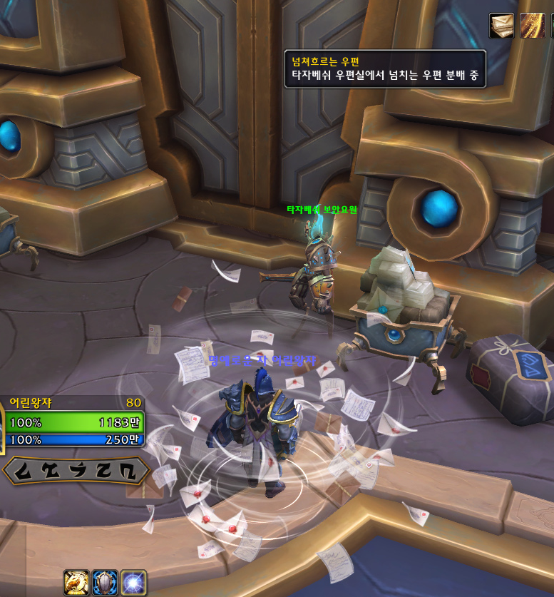 버프는 '넘쳐흐르는 우편: 타자베쉬 우편실에서 넘치는 우편 분배 중'이라고 적혀 있습니다.